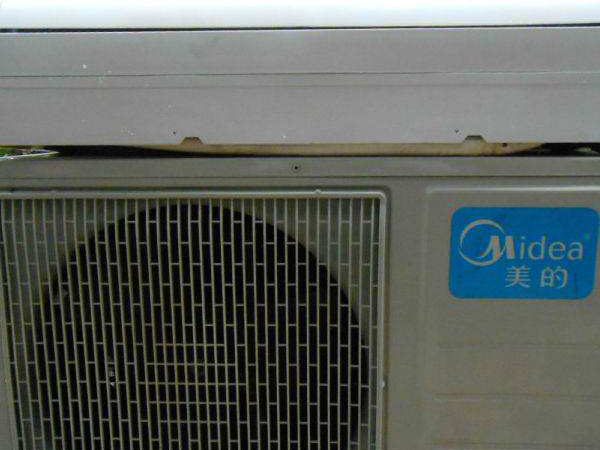 三、用手按住空調(diào)兩側(cè)凹進去的部位,打開空調(diào)的外殼。
